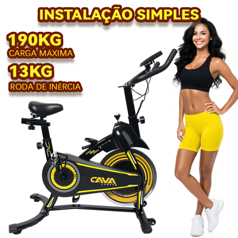 A Cavalletta Spinning Bike oferece treinos intensos e completos em casa, ideal para queimar calorias e fortalecer pernas e glúteos. Possui design compacto com rodinhas, selim e guidão ajustáveis, pedais seguros e display multifuncional que monitora desempenho em tempo real. Estrutura robusta, confortável e silenciosa, suporta até 190 kg e garante treinos eficientes com qualidade e durabilidade.